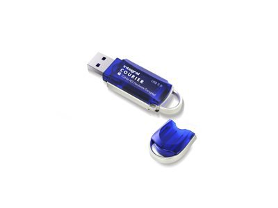 Clé USB 8Go Courier - USB 3.0 - Chiffrement Hardware AES 256 BIT - Certifiée FIPS 197 - Bleu translucide - Effacement des données après 6 tentatives infructueuses d'entrée du mot de passe