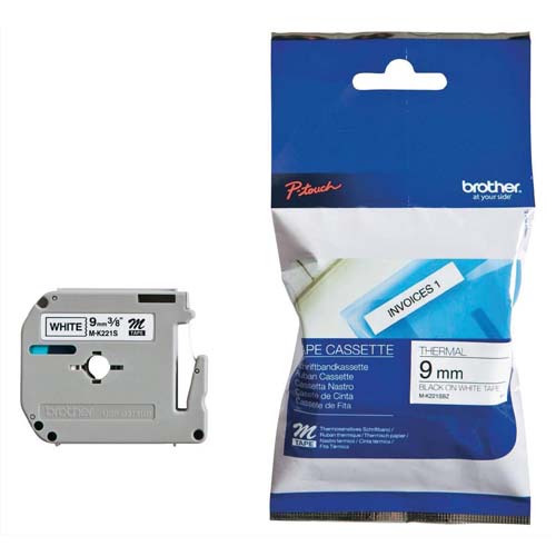 BROTHER Ruban série M non laminé 9mmx4m Noir/Blanc MK221SBZ