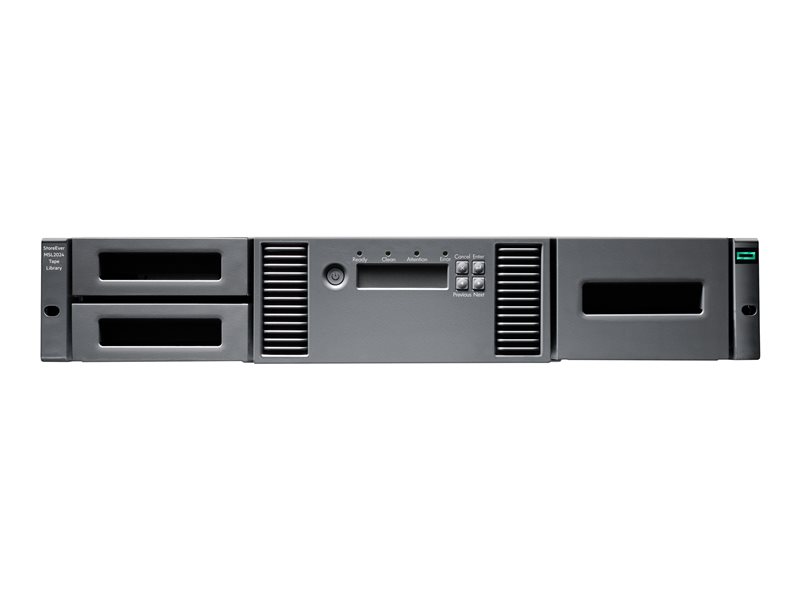 HPE Storage MSL2024 - Bibliothèque de bandes - 432 To / 1.08 PB - logements : 24 - LTO Ultrium (18 To / 45 To) x 1 - Ultrium 9 - nombre maximum de lecteurs : 2 - Canal à fibre optique - rack-montable - 2U - lecteur de codes barres, chiffrement